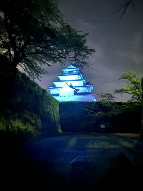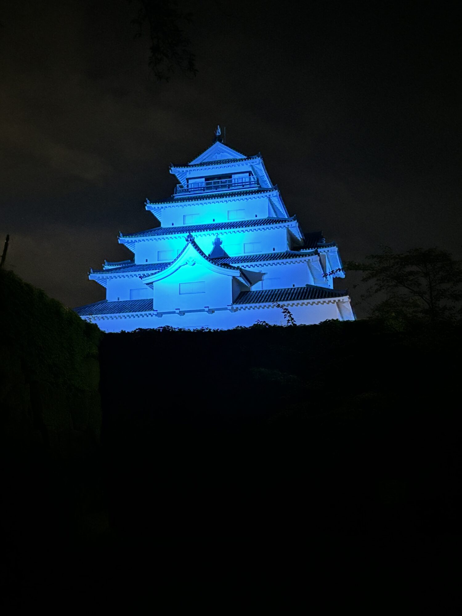 ブルーライトアップされた鶴ヶ城 2024年6月21日 昨日6月20日は「世界難民の日」ということで全国の施設でブルーライトアップが行われました。ここ会津でも鶴ヶ城が青色にライトアップされ、普段は見れない青色にライトアップされた鶴ヶ城を見ることが出来ました。