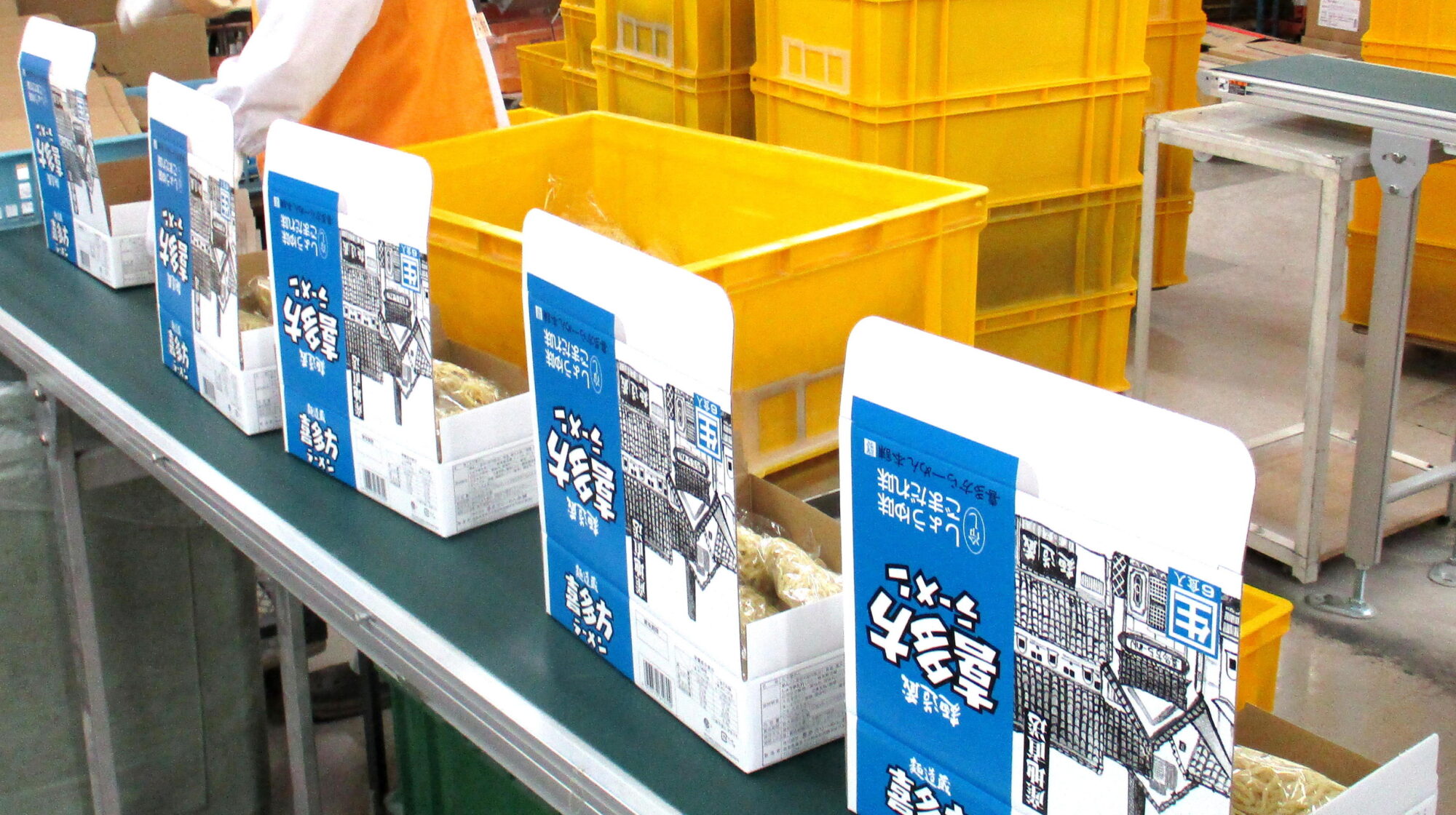※6食冷し土産箱の生産ラインの様子
