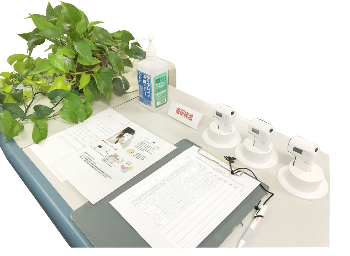 新型ウイルス等の感染予防について 2020年3月24日 弊社ではお客様並びに従業員の感染予防のため、マスク着用、社内の小まめな掃除、アルコール除菌、定期的な空気の入れ換え等を行っております。また毎朝全従業員は検温を行い、社内独自の基準として37℃以上の者には報告のルール付をしております。商談等で弊社にお越しの業者様にはせきエチケットとしてマスク着用での応対をご容赦ください。