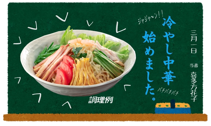 冷やし中華始めました。 2020年3月1日2020年3月1日 お待たせいたしました o(^-^)oイエイ♪ 冬が終わって暖かくなって来るこの時期に食べる『冷やし中華』 は格別です。 是非、半年ぶりにツルツルシコシコの食感とのど越しをご堪能ください。