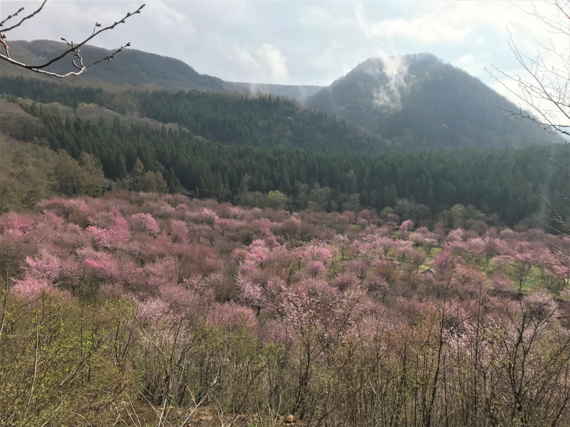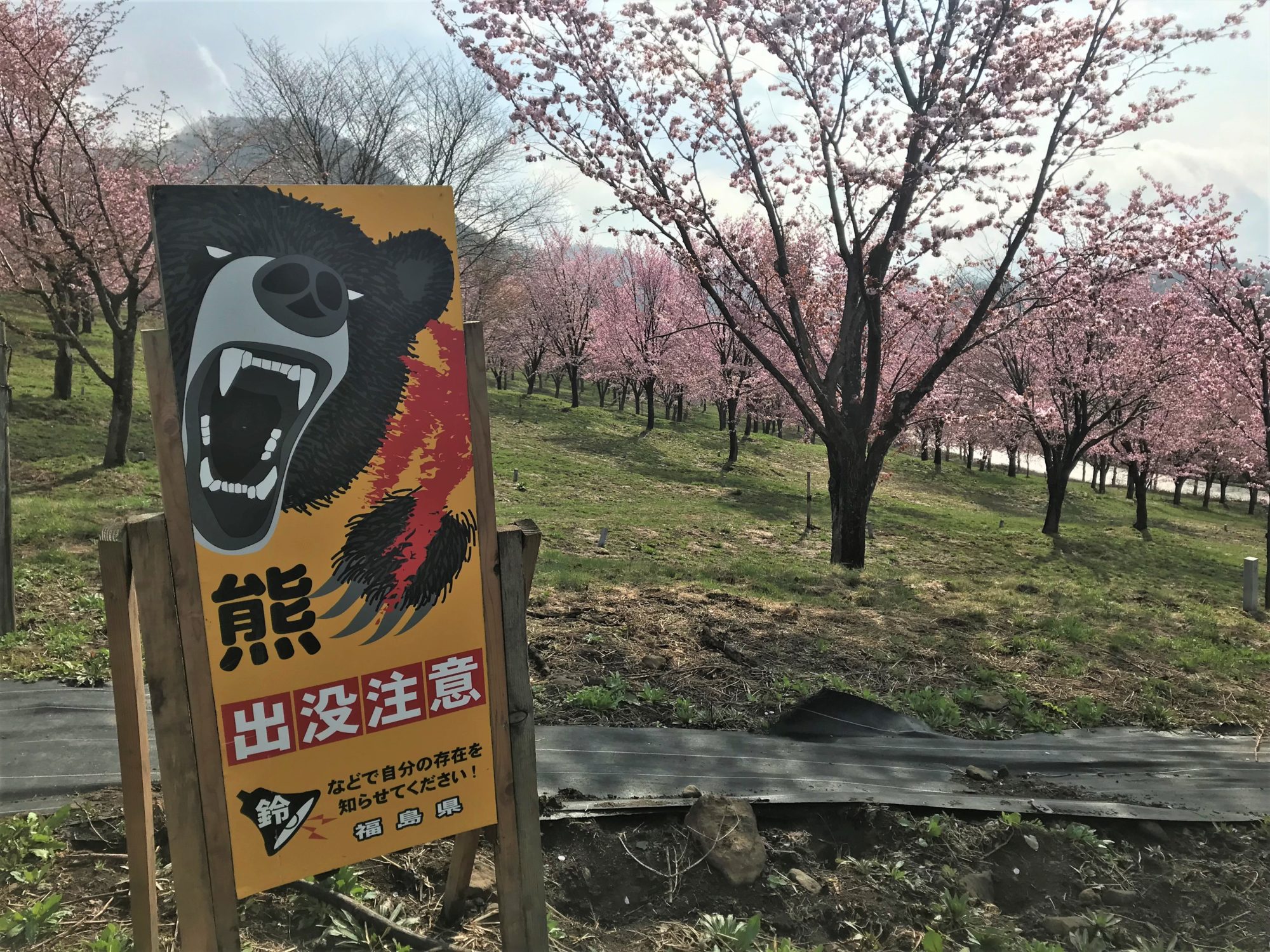 裏磐梯の峠桜~もうすぐ満開 2022年4月23日 およそ3000本の大山桜🌸が咲き誇る裏磐梯の峠桜がもうすぐ満開を迎えようとしています。今日は寒くて晴れ間もイマイチでしたが、明日以降天気になれば一気に満開になってくるような気配です。 360°桜のパノラマを楽しみながら往復20分程度の小路を歩きます。 熊出没注意の看板もありました。念のためご注意ください。