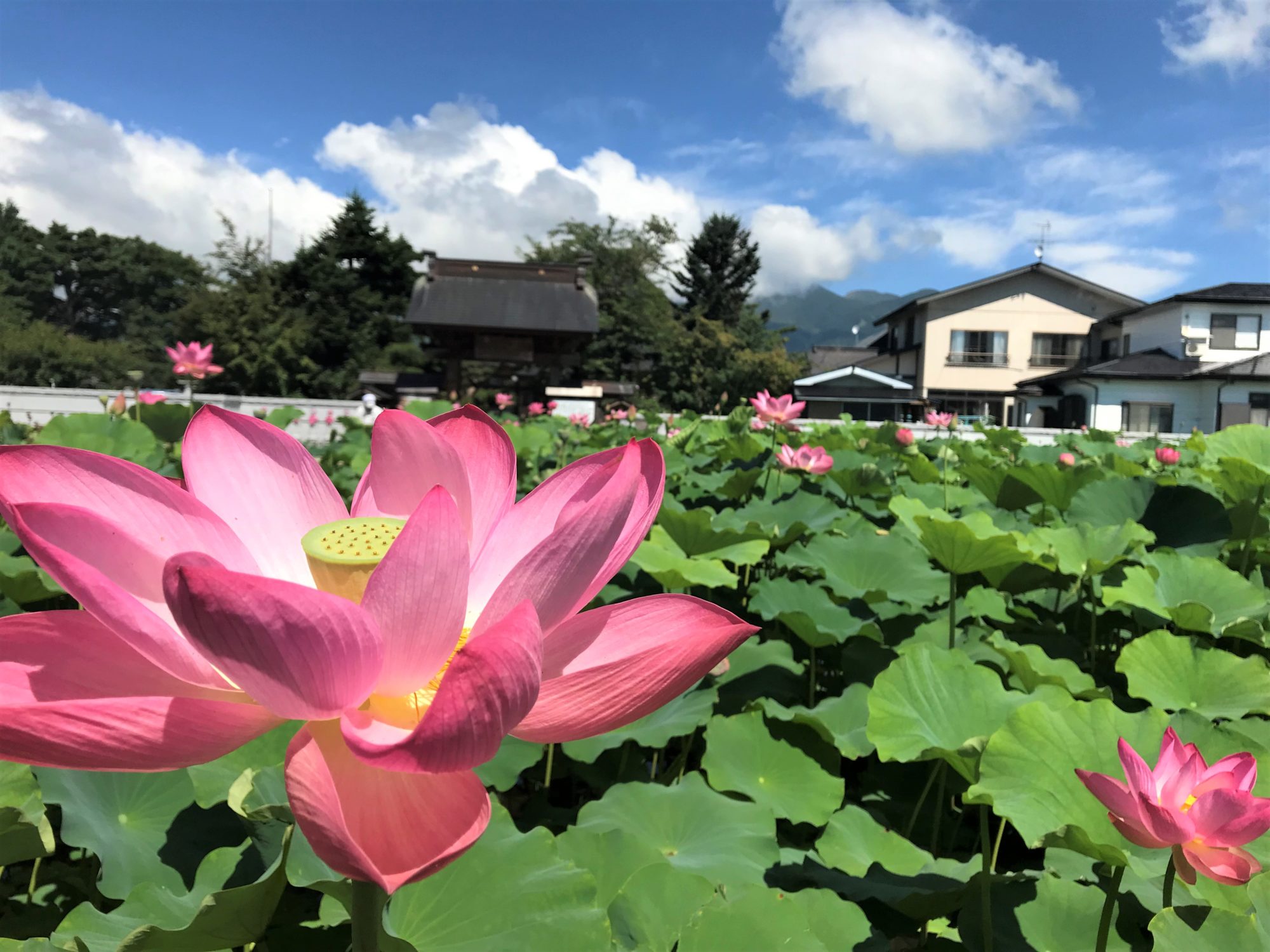 野口英世の菩提寺「長照寺」の蓮 2022年9月10日 野口英世の菩提寺「長照寺」は歴史は古く慶長8年(1603年)に建立されたそうです。境内には野口英世の両親の墓や野口英世夫妻の墓もございます。また門前には大きな蓮池が広がり写真愛好家の撮影スポットにもなっているようです。