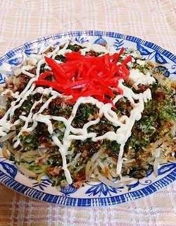 3、2の麺に用意した具材を盛り付けたら1のたれをかけて出来上がりです。